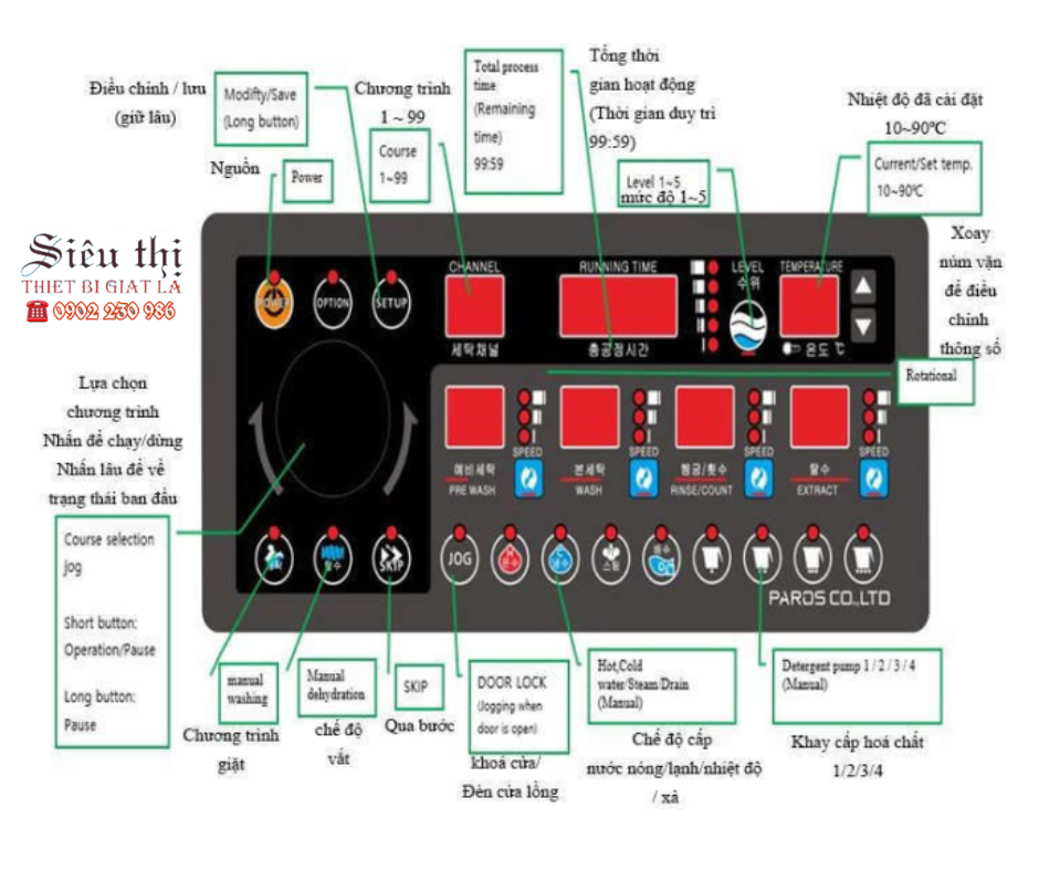 • Tắt Aptomat (hoặc cầu Dao) khi không sử dụng máy và sau khi kết thúc buổi làm việc.Bảng điều khiến máy giặt Paros - Công nghệ Mỹ đến Hàn Quốc