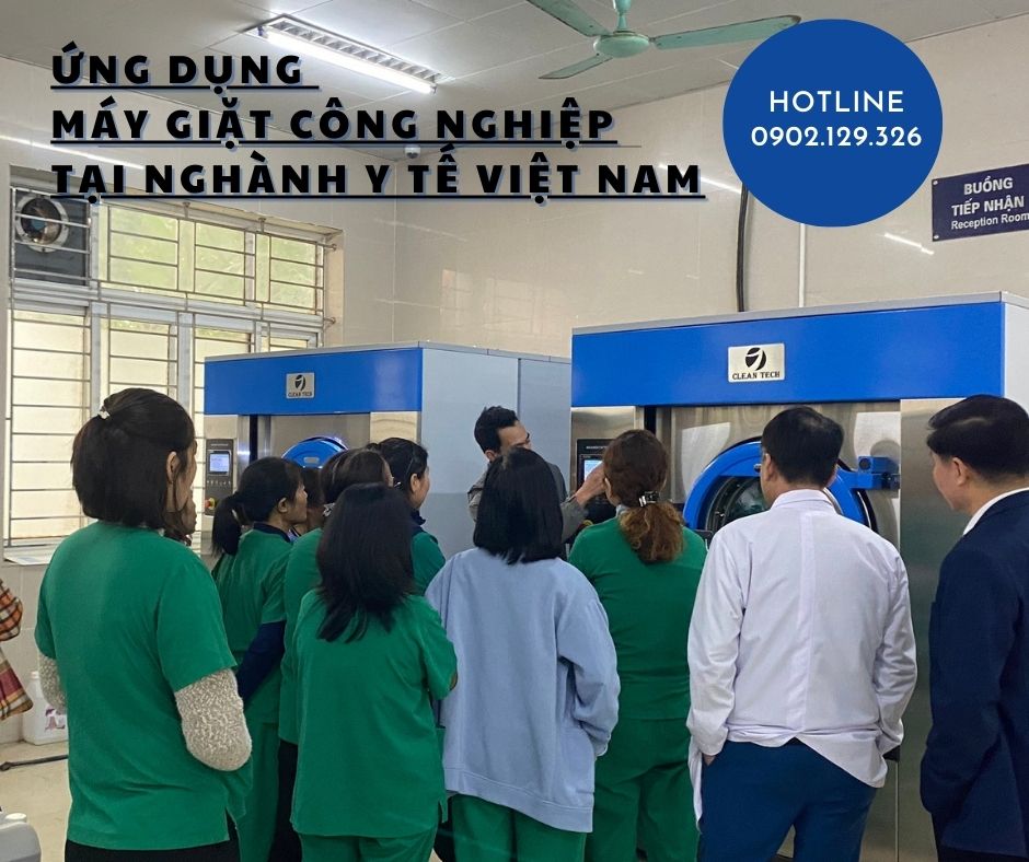 Máy giặt công nghiệp có khả năng giặt ủi số lượng lớn quần áo, chăn ga, gối đệm trong thời gian ngắn, giúp tiết kiệm thời gian và công sức cho nhân viên y tế.