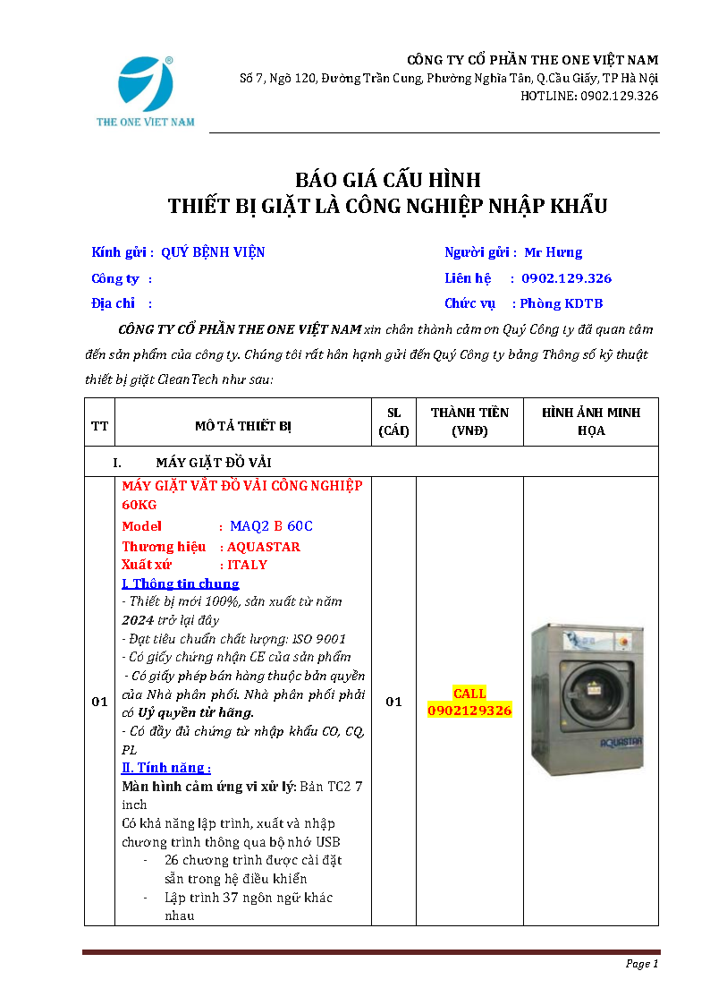 ![]() | Nguyễn Mạnh Hưng * P. Dự Án - Giải pháp hệ thống giặt là cho Nhà Máy - Khách Sạn - Bệnh Viện. * Mobile: 0902.129.326 * Email: hungnm.theonejsc@gmail.com * Zalo: Click vào đây để chat Zalo |